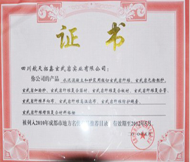 四川省企业产品执行标准证书 |