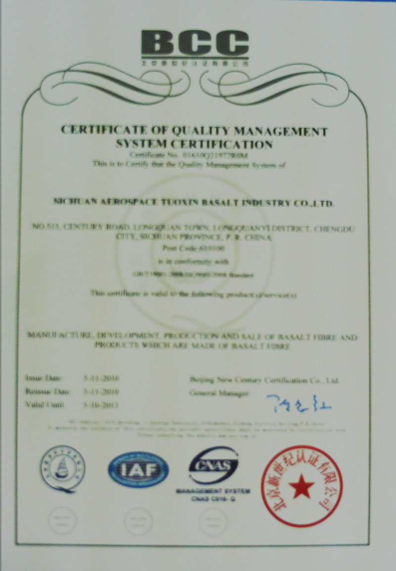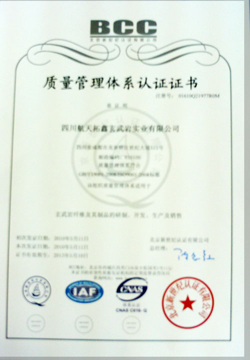 ISO9000质量管理体系认证证书 英文版 ISO9000质量管理体系认证证书 中文版