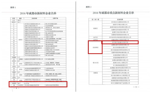 航天拓鑫被评为成都市重点新材料企业