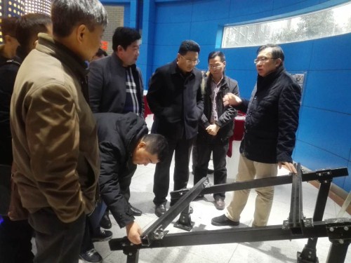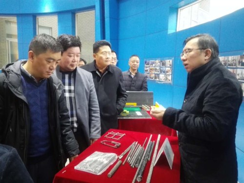 公司总经理曹柏青向来访领导介绍公司玄武岩纤维复合材料产品