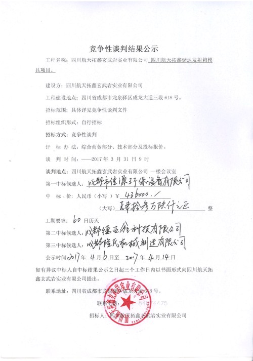 (储运发射箱模具项目)竞争性谈判结果公示