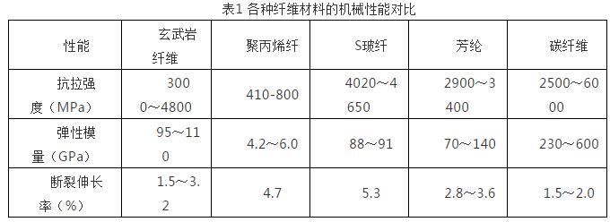 表1 各种纤维材料的机械性能对比
