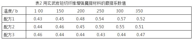 表2 用玄武岩短切纤维增强魔擦材料的靡擦系数值