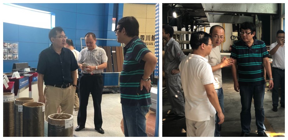 8月29日下午,成都市经济和信息化委员会总经济师罗西临一行到公司调研,总经济师罗西临在公司总经理柏青的陪同下,先后参观了公司展厅和生产现场,详细了解公司市场推广、人才引进、政策扶持、标准建设、出口贸易等方面的情况,并希望公司加大技术研发力度,积极开拓市场,为四川省新材料产业强省的发展贡献力量。