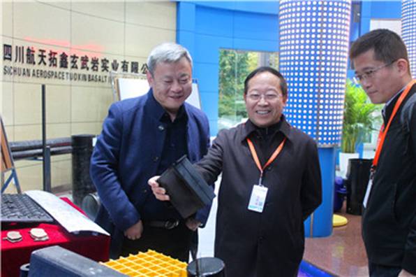 来宾首先参观了公司产品展示厅,陈剑总经理向来访客人详细介绍了航天拓鑫玄武岩纤维后制品及复合材料领域的研究、应用和经营情况,并在座谈会上展开了深入的探讨和交流。