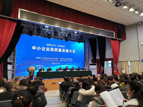 12月17日,成都经开区(龙泉驿区)召开中小企业高质量发展大会,1000余家中小企业代表参加此次大会。会议集中通报了2019年度各级工业发展类、现代农业发展类、文创发展类、军民融合发展类、现代物流发展类、金融发展类、科技创新类、创新创业类、人才奖励类政策资金奖补情况,项目金额达到3.81亿元,惠及企业1607家(次)。我公司在各级工业发展类、军民融合发展类、科技创新类以及人才奖励类方面均获得政策奖励,被列入“2019年度惠企政策资金奖补名单”。同时会上龙泉驿区政府将涉及税务、社保、融资,土地、水、电等要素保障,产业发展以及科技创新、创新创业、人才奖励等多领域的各级政策汇编成册,发放到企业手中。中国银行、农商银行、龙雏基金逐一推介适合中小微企业特性的贷款产品,帮助企业找到适合自身发展的融资解决方案。