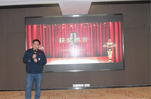 总经理杨骥、副总经理杨彦斌为先进工作者颁奖