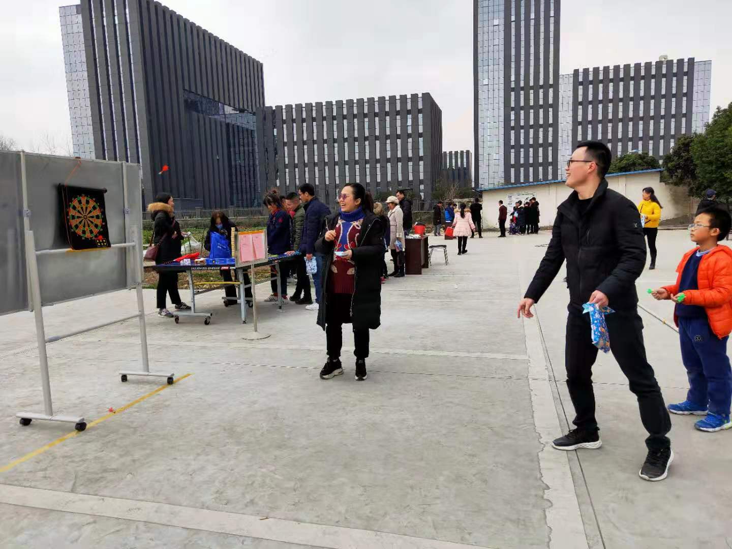 拔河比赛结束后,各分工会组织员工及家属们参加新春游园活动,活动现场设有“猜灯迷”、“潘多拉盒子”、“鱼跃龙门”、“环保能手”、“乾坤小挪移”、“叠罗汉”、“投飞镖”、“穿云箭”等丰富多彩的项目。