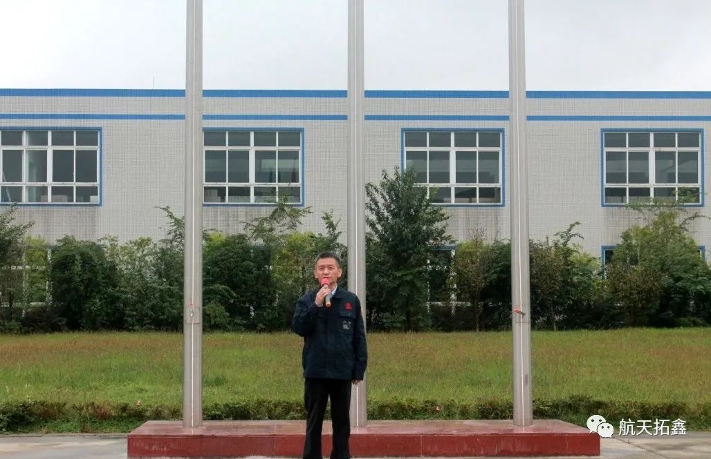 升旗仪式上,公司总经理杨骥代表领导班子进行简要的讲话。