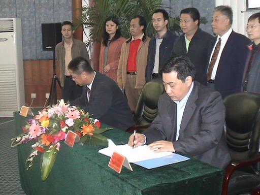 (图为张华和廖仁松分别代表双方在协议上签字)