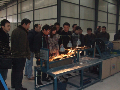 我公司配套企业副总经理韦占全陪同来访领导参观玄武岩复合筋生产车间现场