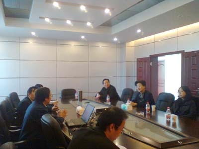 我公司总经理曹柏青、副总经理鲜平、副总经理杨彦斌(右方)向陈炎副院长(左方)汇报公司