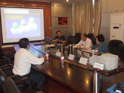 我公司副总经理鲜平(左一)向李顾问(右一)做详细工作汇报