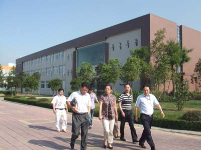 我公司副总经理鲜平(右一)陪同集团公司总工程师金其明(中)、七院副院长王深坤(左一)参观公司工业园区