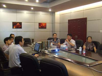 我公司副总经理鲜平向集团公司总工程师金其明女士、七院副院长王深坤汇报玄武岩纤维项目专题报告