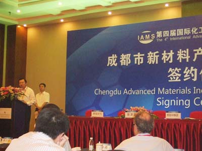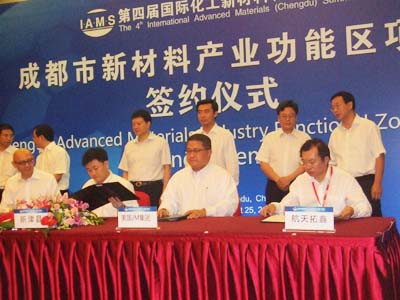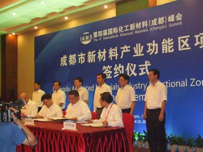 2011年8月25日,我公司总经理曹柏青应邀参加第四届国际化工新材料峰会项目签约仪式,新津作为成都新材料产业发展的主要区域,成都新材料产业功能区是成都规划的13个市级战略功能区之一,规划面积33平方公里。目前,功能区已经聚集企业60余家,今年上半年共签约项目17个,累计协议资金达到76.18亿元。预计到2015年,功能区将实现产值300亿元以上;到2020年实现产值超千亿,建成国内一流复合型新材料产业基地。