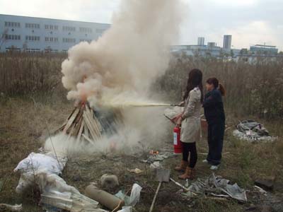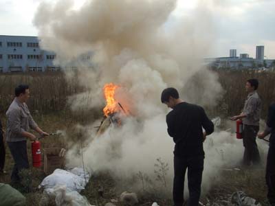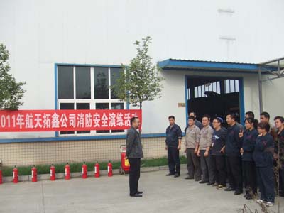 安全工作是公司的头等大事。做好消防安全工作是促进公司健康、稳定、和谐发展的关键,是保障全体员工生命与公司财产安全的重要环节。本着坚持“安全第一,预防为主”的方针和“以人为本”的思想,提高自救防范能力,做到在发生火灾时,能临危不乱,有序,迅速地按照消防方法,顺利抢险自救,确保生命安全和公司的消防安全,航天拓鑫公司全体员工开展了安全消防演练。2011年11月7日,由公司副总经理杨彦斌带队,组织行政、生产等相关部门员工开展实景演练。