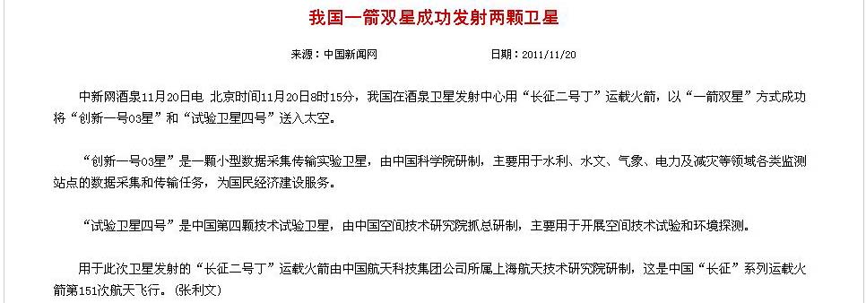发布时间:2011-11-28 阅读次数:2006 信息来源:中国航天报