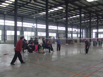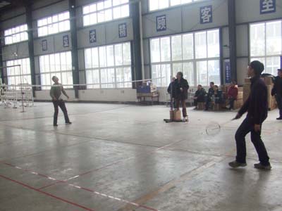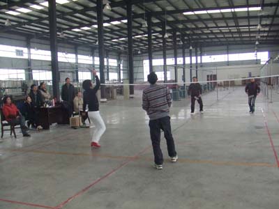 图为公司领导与员工参加羽毛球比赛现场照片 | ||||||