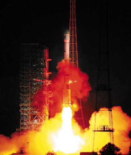 火箭发射26分钟后,星箭分离。西安卫星测控中心实时传来的数据表明,卫星准确进入地球同步轨道。
