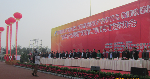 2012年10月27日上午9:00,由中共四川新津工业园区工作委员会、四川新津工业园区管理委员会主办,新津县工业投资经营有限责任公司、四川航天五源复合材料有限公司承办的主题为(新材料产业功能区)第二届“航天玄武岩”杯职工运动会,在新津县新平镇华润高中运动场隆重地拉开了帷幕。县委书记巫敏、县委副书记、县长王道明,县人大常委会主任孙英元,县政协主席张国清等领导,以及相关企业、镇乡和部门负责人出席了运动会开幕式。