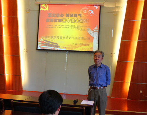 2014年4月30日,四川航天拓鑫玄武岩实业有限公司在二楼会议室开展学习《坚定信心,鼓足勇气,全面贯彻落实三中全会精神》文件,公司工会主席唐太顺代表公司临时党委书记、副总经理鲜平出席并主持会议,公司共产党员、共青团员、中层干部、班组长、入党积极分子参加会议。