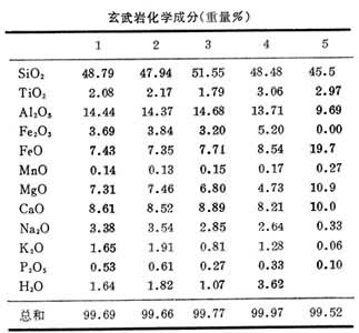 玄武岩化学成分表