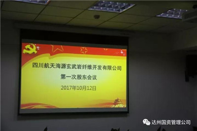 10月12日上午,达州市玄武岩连续纤维产业发展工作会暨四川航天海源玄武岩纤维开发有限公司第一次股东会在达州市国有资产经营管理公司19楼会议室顺利召开,达州市国有资产经营管理公司、成都华川公路建设集团有限公司、达州水务集团有限公司、成都三一能投科技有限责任公司、达州发展(控股)有限责任公司、四川航天拓达玄武岩纤维开发有限公司等6家股东、经开区、市级有关部门出席会议。市国资经营公司总经理邓华当选为首届董事长兼总经理(法定代表人)。