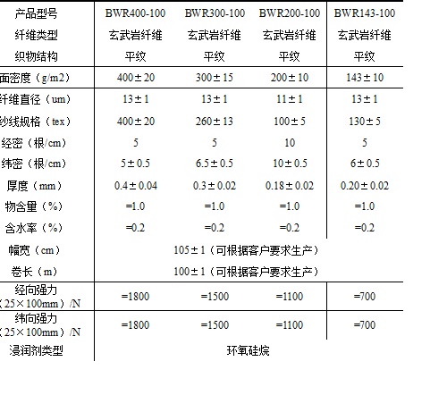 【玄武岩纤维方格布规格技术参数】