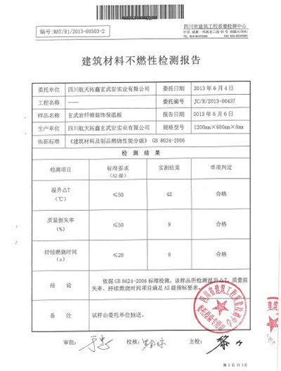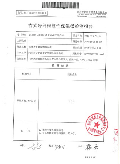 玄武岩纤维具有耐高温(能达到700℃)、导热系数低(0.033w/m.k)、不导电、不燃烧等性能,以其作为建筑物外墙保温或隧道防火装饰板有其优越的性能。